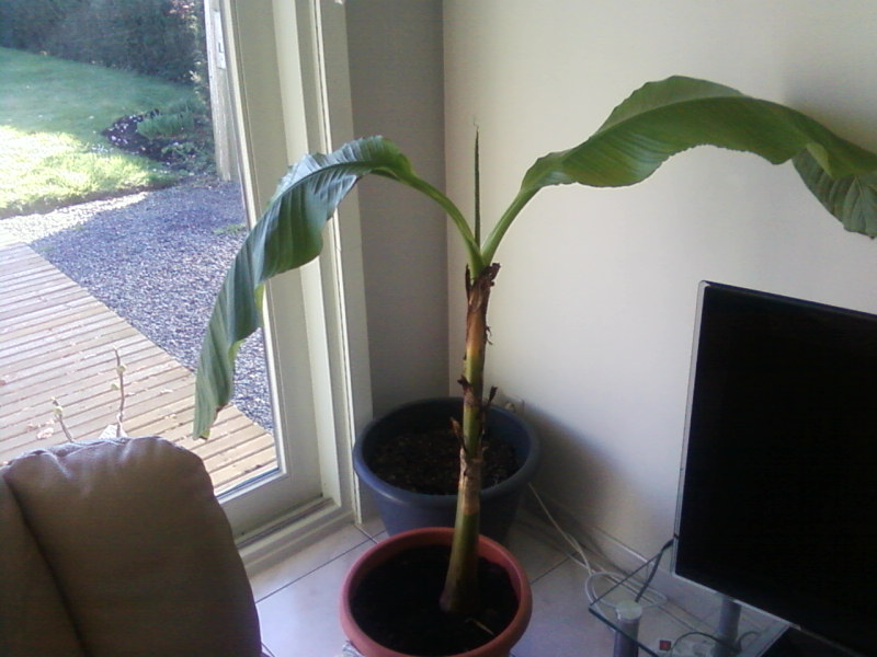 Zoals het er nu uitziet heb ik 1 banaan verloren (basjoo red). Maar ik heb wel een vraag: wanneer ga ik beginnen water te geven? Ze staan al de hele winter in de garage (temp is net vorstvrij), hebben nog geen druppel gehad.
