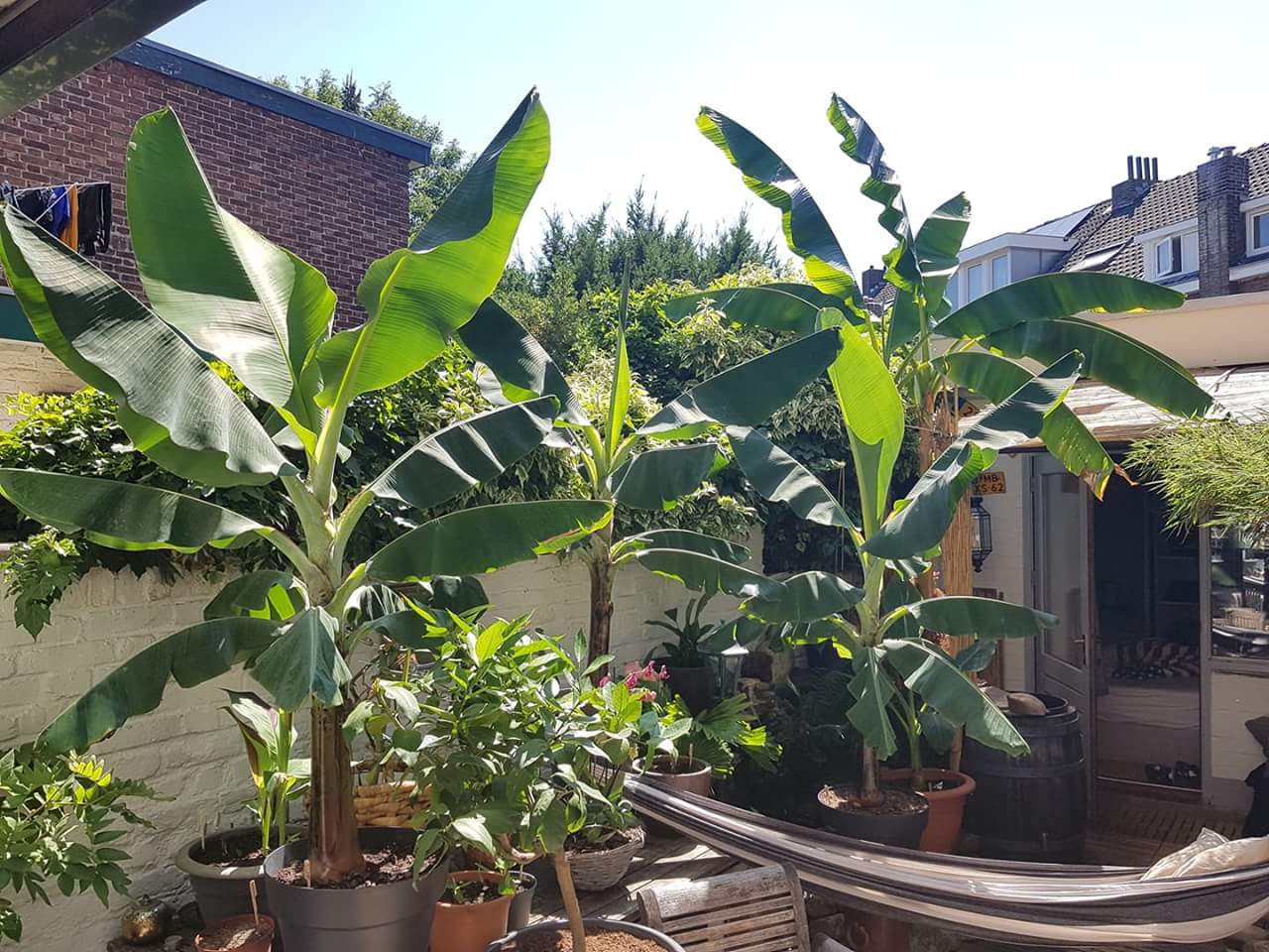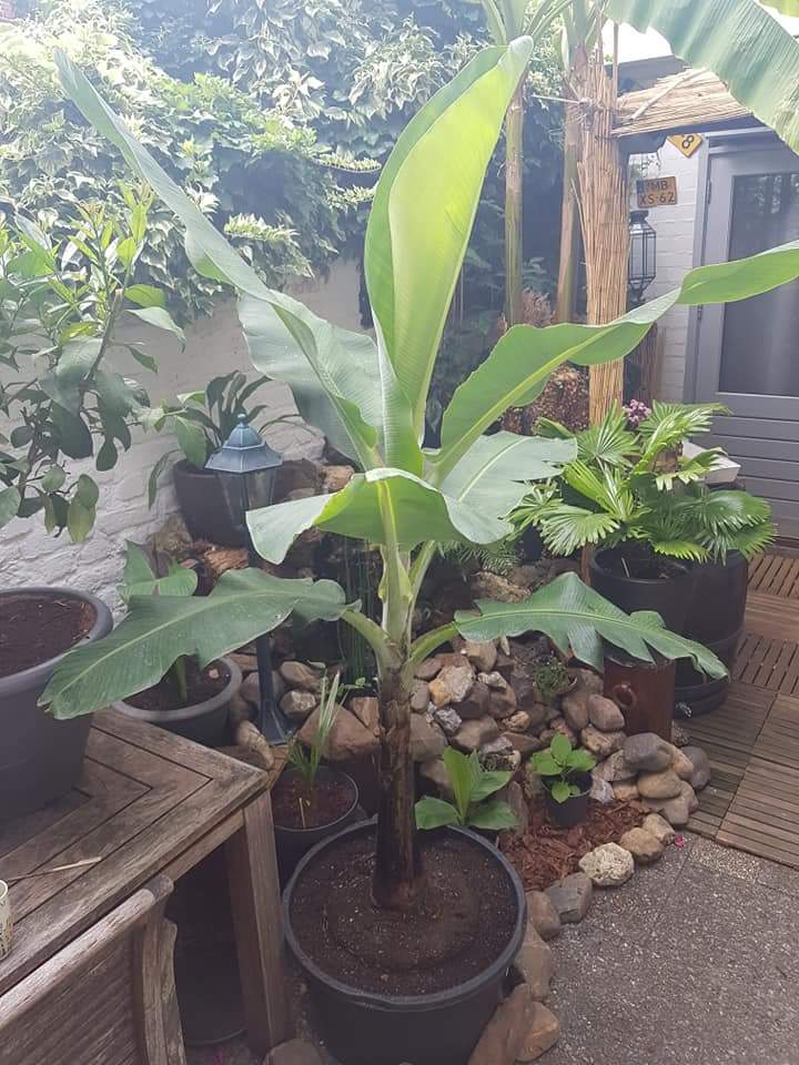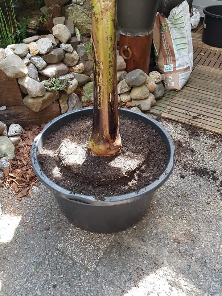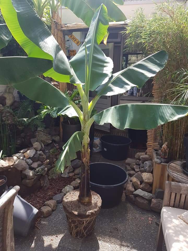 Het uitzonderlijke warme weer hier in Maastricht doen de Bananen zo hard groeien, dat ik al besloten heb te verpotten. Dit had ik namelijk voorjaar 2019 in gedachten :roll: