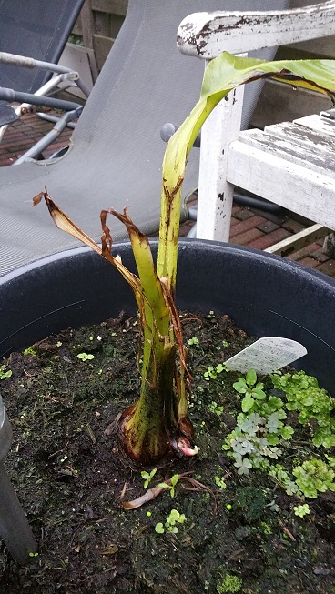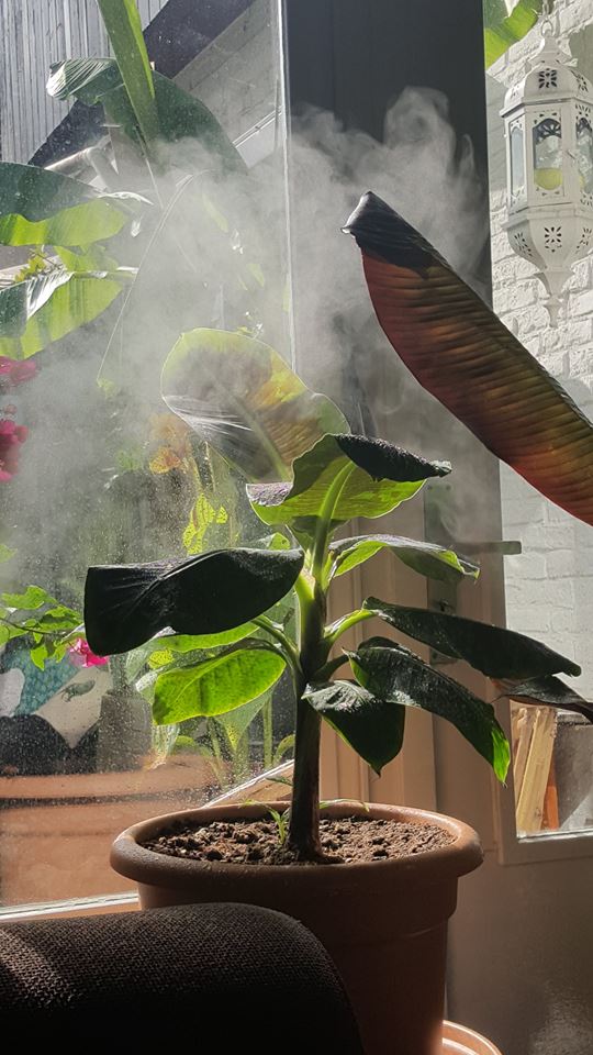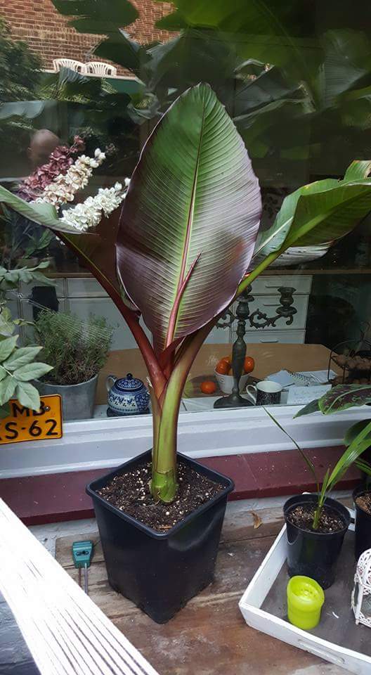 Mijn andere nieuwste aanwinst, de Ensete maurelli geniet nu ook ong. 2 maand in mijn tropenplekje