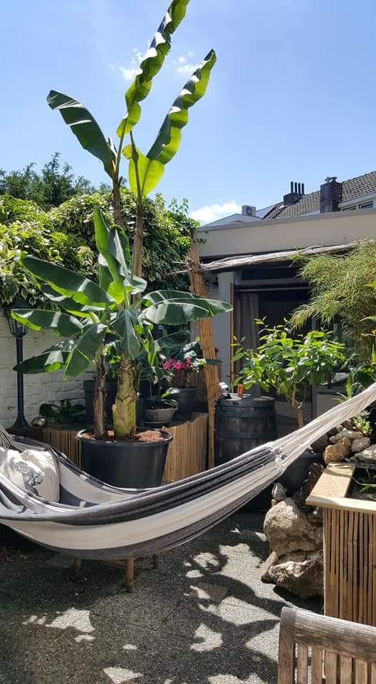 Maar ik ga echt niet naar binnen slepen. Dat is een werk....ach wordt de banaan een echte wilde van :lol:
