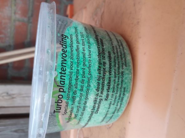 Ik heb in 2022 een eerste zak Peters meststof 20-20-20 gekocht. Het was een zak van 15 kg, daar heb ik twee seizoenen mee gedaan. Het was een succes,in het begin deed ik 10 gr in een gieter van 10 l.