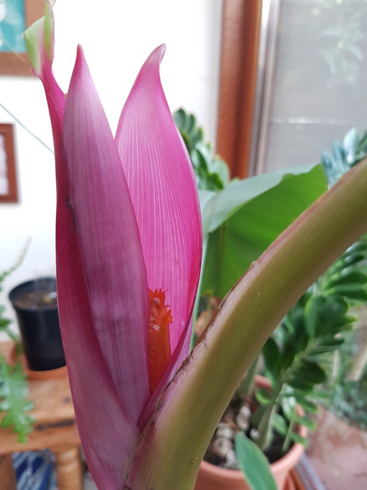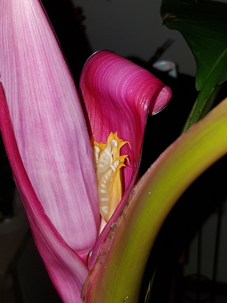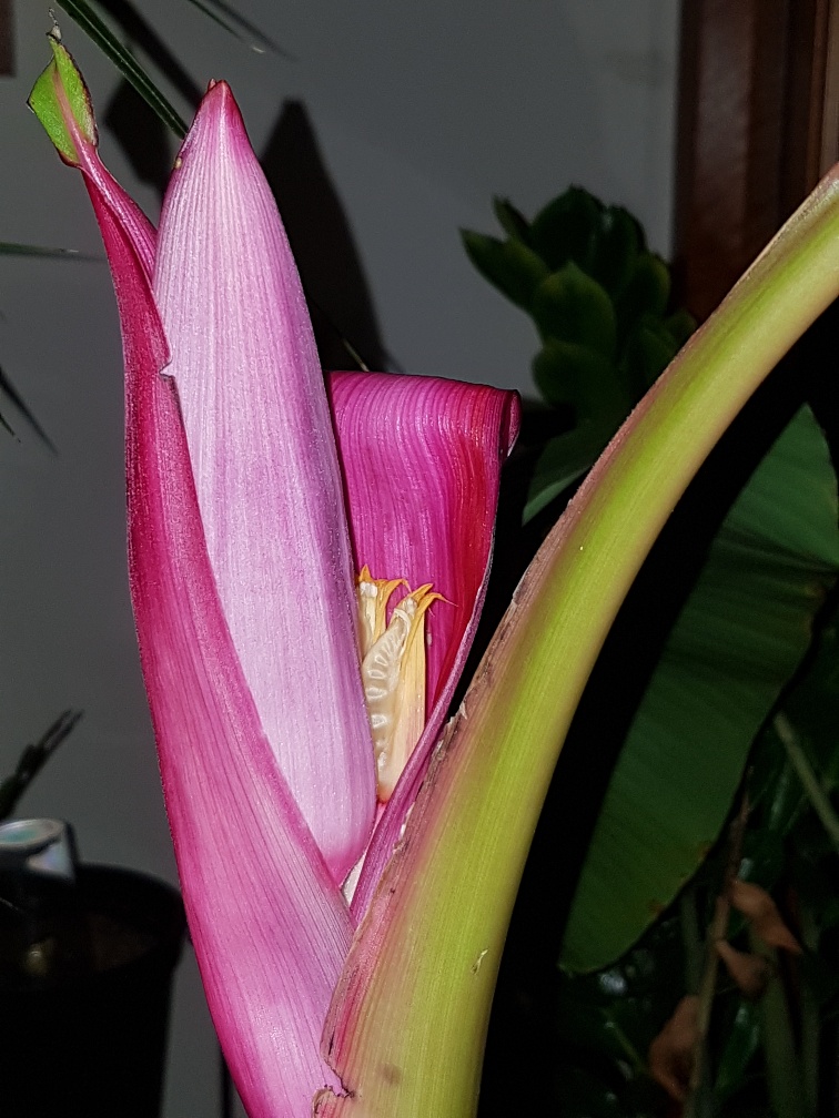 18 februari bloem zichtbaar door de kern,12 dagen later goedkijken 1st 3 roze banaantjes te bekennen. Ff verder zoeken hoe 1 en ander verder gaat ontwikkelen kwam ik toch ook weer hier uit op het forum, Tx Kai!! Yakuza, Carlo, e.a.a. :thai: