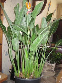 Eindelijk na heel lang wachten heb ik dan toch een Strelitzia. Vanmorgen, speciaal voor mij, op de veiling gekocht. Ennne, ik ben me er toch blij mee. De hele dag met een grijns op m'n gezicht gelopen die er niet meer afging. Omdat ik zo ontzettend blij ben, heb ik ook even een foto's bijgevoegd.