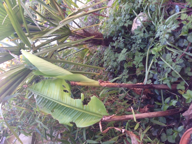 Dit jaar heb ik voor het eerst mijn bananen zonder bescherming buiten laten overwinteren.