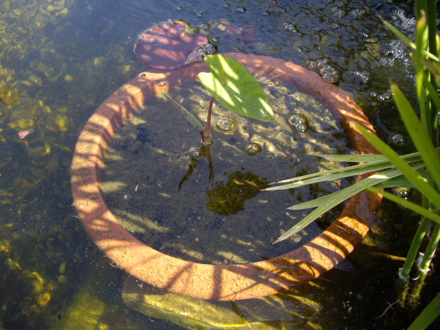 Heb vorige week een test gedaan met colocasia pink china in mijn vijver. Heb de knol opgepot in een bloempot gevuld met kiezelsteen. Een week later komt er al een nieuw blad kijken. Mijn bedoeling is om met de regelmaat foto's te posten zodat jullie mee kunnen genieten van mijn test. Heb ze altijd al in de volle grond gezet en daarom deze test. Nu staat de pot op een plateau in de vijver ( normaal 1,2 m diep ) juist onder waterniveau.