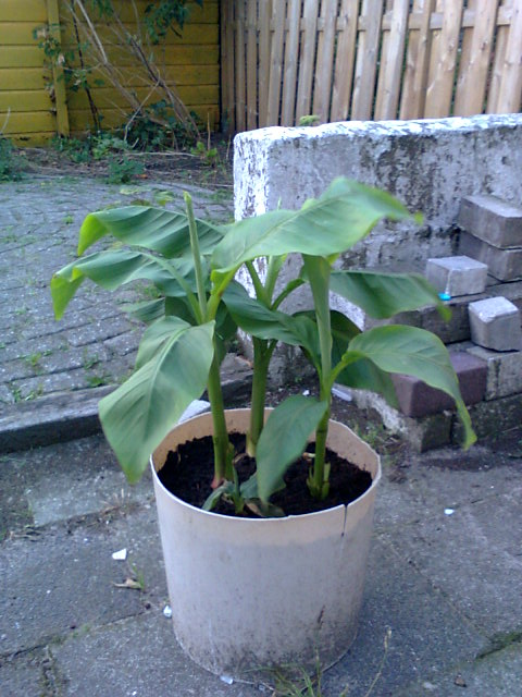Hoi, de banaan stond op het zuidwesten en deed het zeer goed daar, hij is afgestorven na de bloei en de nieuwe weer opgepot, weet niet wat voor een soort het was in die tijd had je enkel deze in de aanbieding.