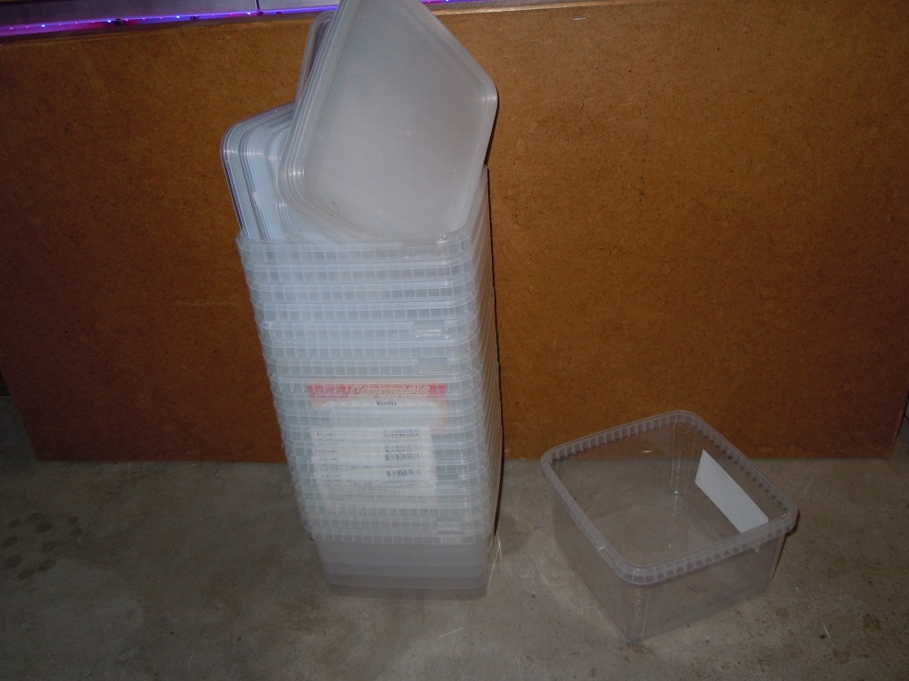 De Chinese bakjes zijn inmiddels van de baan want ik heb nu hele mooie bakken van Kruidvat gekregen (het vrouwtje is daar werkzaam). In deze bakken wordt het schepsnoep aangeleverd en als die leeg zijn gaan ze of met het personeel mee naar huis of in de kliko.