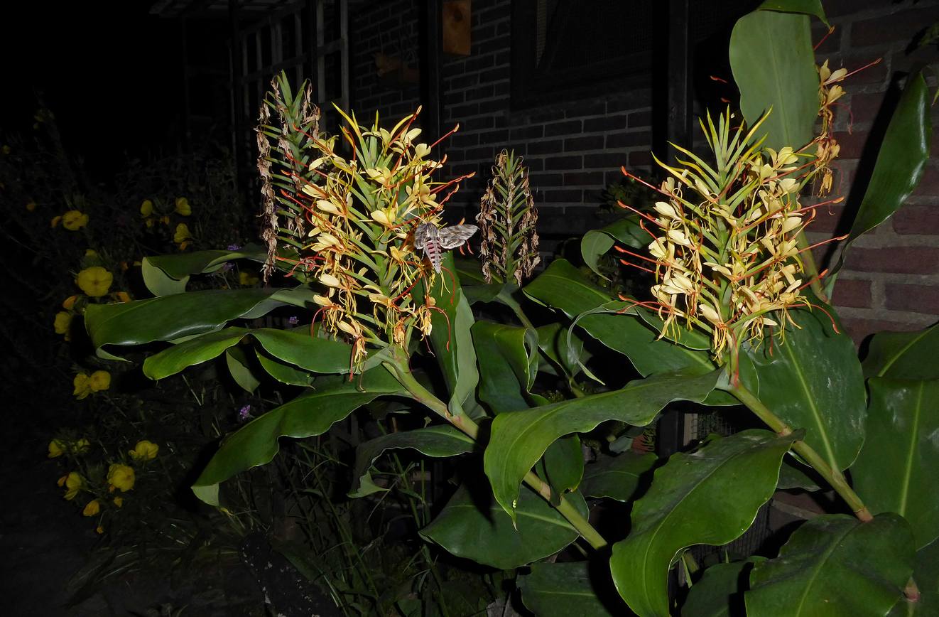 Dit jaar 5 bloemtrossen in mijn Hedychium gardnerianum.