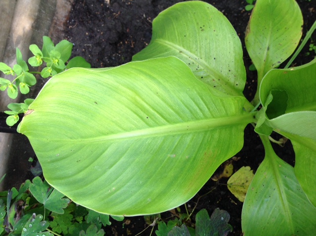 Eind vorig seizoen heb ik een Ensete Glaucum toegevoegd aan de verzameling hier, na de winter is deze na veel moeite weer opgestart. Dit voorjaar heb ik er nog een bij gekocht. Deze nieuw gekochte kreeg vrij snel verkleurde bladeren. Eerst dacht ik dat het verbranding was, maar terwijl hij nu al een tijd op dezelfde plek in de zon staat en door groeit, blijven er geel verkleurde bladeren uitkomen. De andere Glaucum van vorig jaar kreeg eerst mooie bladeren, maar vertoont inmiddels dezelfde verkleuring. De groei zit dus wel in beide bananen, maar het blad is geel gekleurd in de bladnerf en niet mooi glad, maar meer golvend. Iemand een idee wat dit kan zijn? Het lijkt een beetje op de canna ziekte, de verkleuring is hetzelfde, maar het is mij niet bekend dat bananen een vergelijkbare ziekte kunnen krijgen. Het is erg zonde van de bladeren en de planten zien er niet gezond uit.