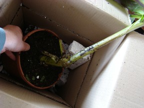 Als ik planten verzend neem ik een doos, zet de plant er mooi in (als het kan met droge grond) en vul de doos vol met proppen papier. Dan mogen ze de doos zelfs op zijn kop houden. Zo heb ik zelfs al succesvol pakketten naar Engeland verzonden, dus het is een beproefde methode :)