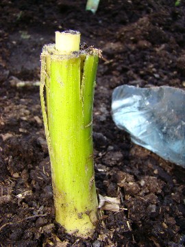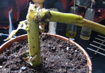 Waar hij een stam van zo'n 50 cm had, heb ik hem op 10 cm moeten afknippen.. helaas :|