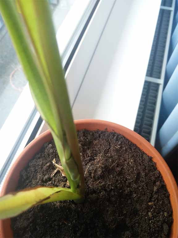 Een paar weken geleden kocht ik een Musa Velutina stekje, er zaten zo'n 3-4 bladeren aan en gezonde wortels toen ik hem kocht.