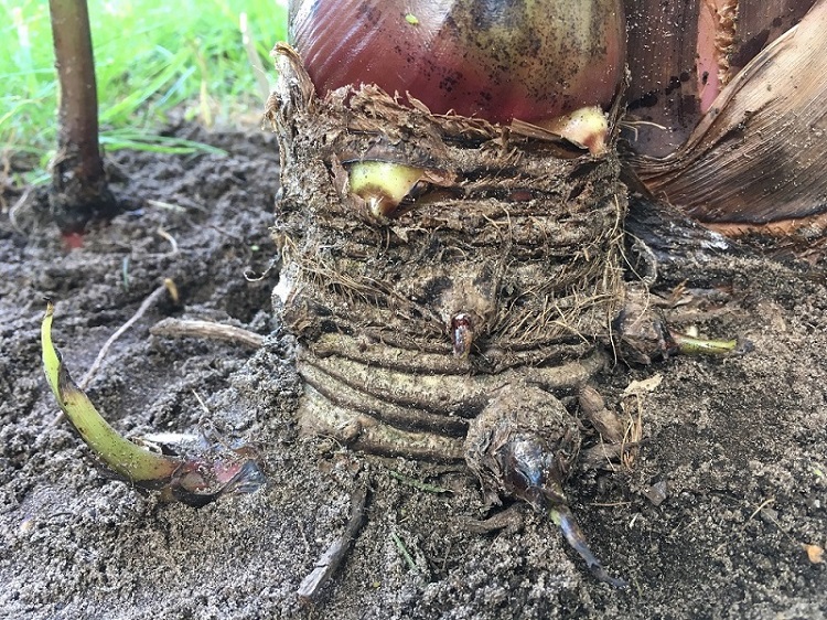 Bij mijn musa basjoo heb ik onderaan de stam een harde knobbel zitten. Ik heb een foto bijgevoegd. De musa groeit verder erg goed. Hebben jullie enig idee wat dit is en of ik hier iets mee moet doen?