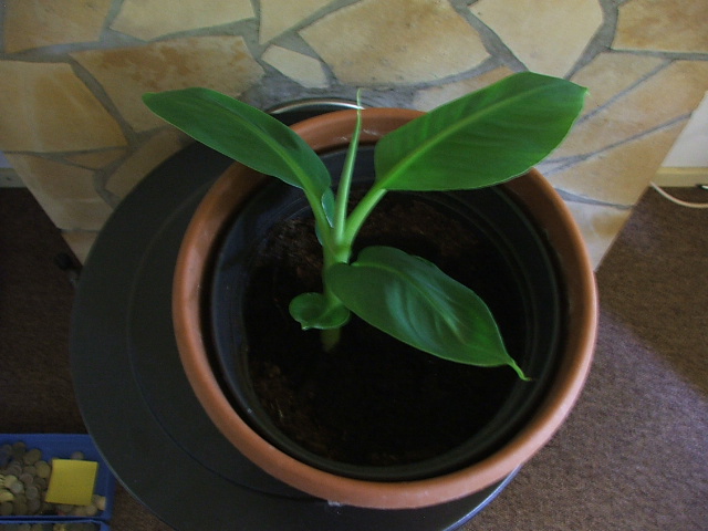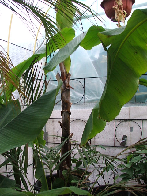 Vorig jaar had ik een dwarf cavendish gekocht, en die heeft het goed gedaan en de winter overleeft in de kas, maar toen heb ik hem in het voorjaar teveel water gegeven en is hij de pijp uit gegaan, maar ik heb desondanks de belaberde scheuten er afgesneden voordat hij de kliko in ging, en