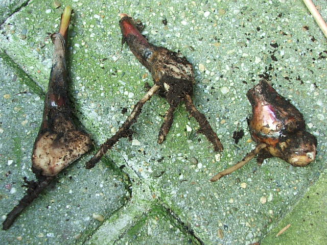 Op de 5e foto zie je 3 knolletjes, en daarvan heeft de rechtste met slechts 1 worteltje het overleeft.