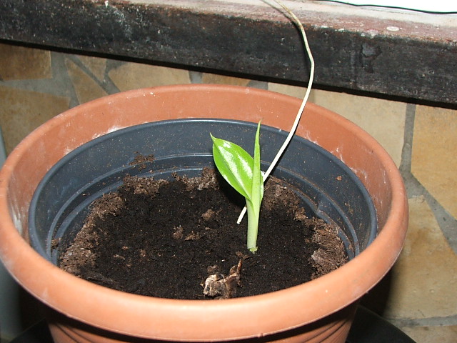 Ik heb hem dan ook op een schaal op de kachel staan die op de waakvlam staat en net genoeg warmte afgeeft aan de potgrond die rond de 26 graden ligt.