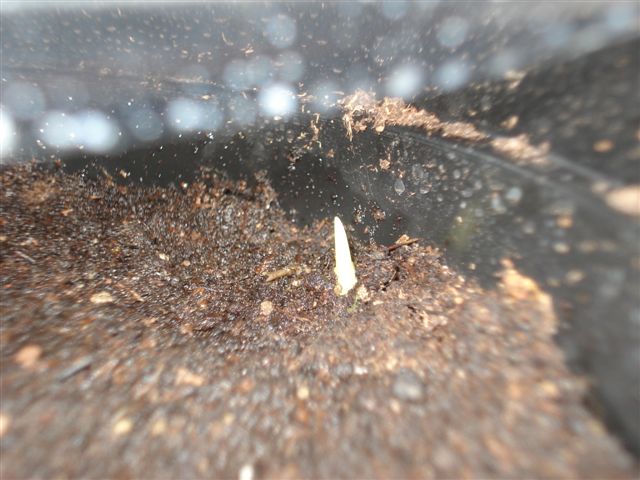 Mijn Ravenala Madagascariënsis zaden zijn net aan het kiemen. Ik heb er 3 keer honderd in één pot gezaaid (wat eigenlijk wat veel is) en de eerste beginnen nu pas te kiemen. Na drie maanden dan nog wel. Ze staan gewoon in de serre, maar zouden eigenlijk een constante hoge temperatuur moeten hebben, dus ook s'nachts. Ik ben benieuwd hoeveel er gaan kiemen. Ik heb net nieuwe zaden van een nieuwe oogst. Ze zien (en zijn natuurlijk) er heel erg vers uit.