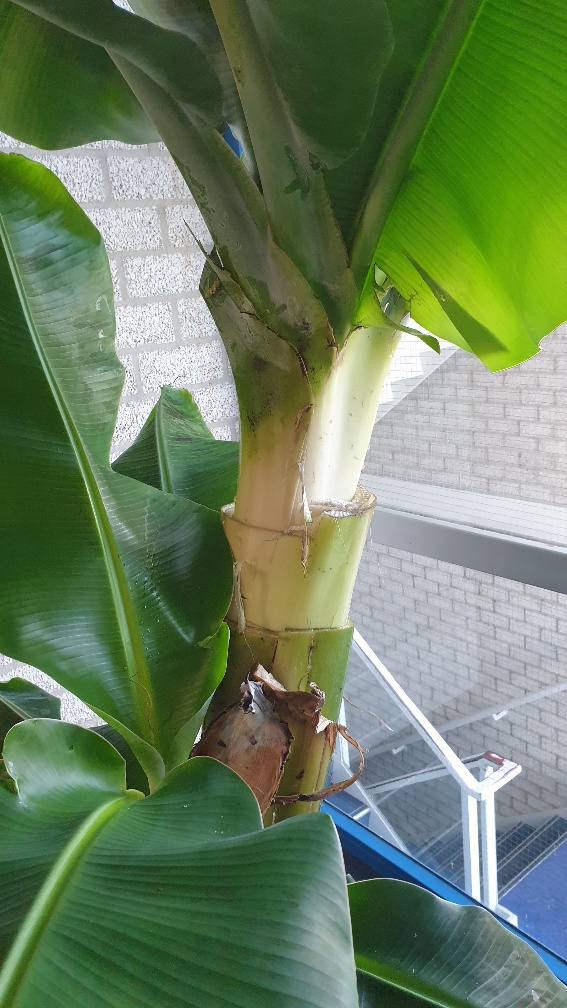 Banaan zat verstopt, nieuw blad rolde niet meer uit en zag verdikking optreden.