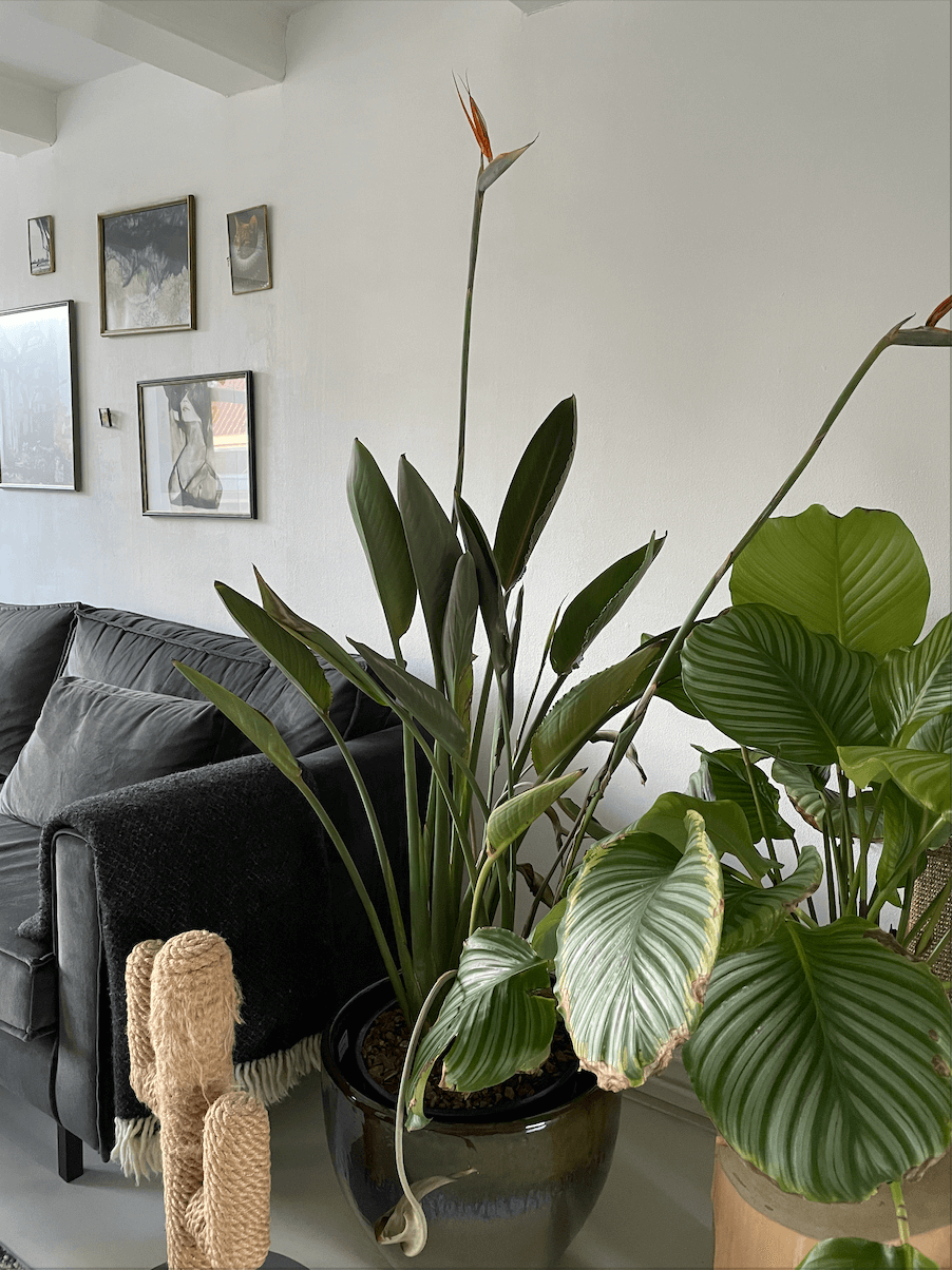 - Toen ik hem kocht waren de bladeren allemaal al een beetje dichtgevouwen, hoort dat? Heel anders dan de Strelitzia Nicolai's die ik heb, die mooie grote open bladeren hebben.