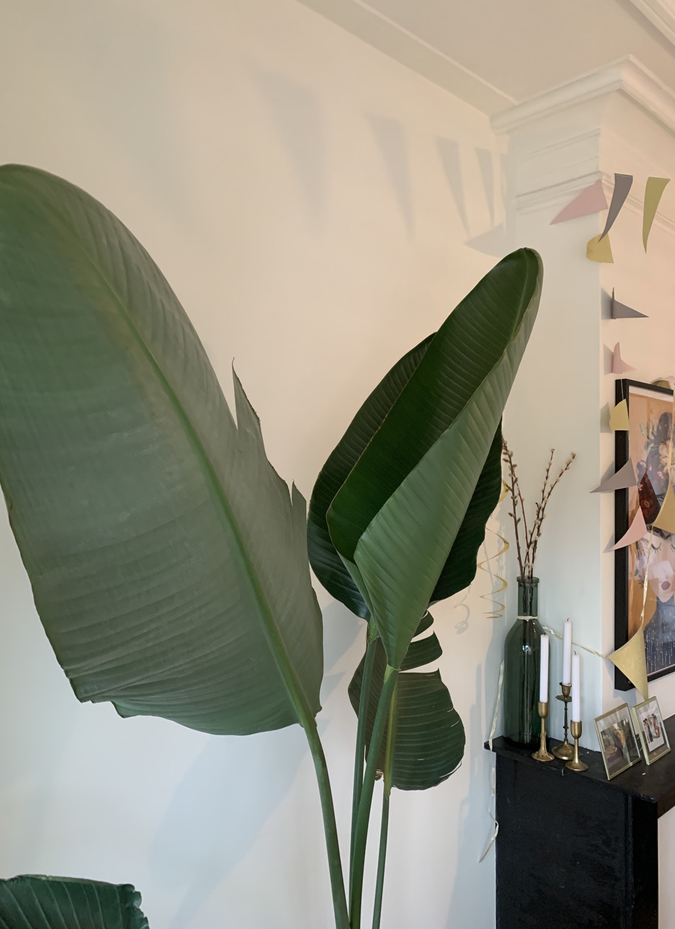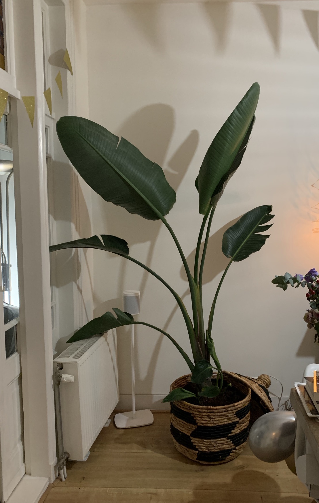 De trots van ons huis, een 2 meter hoge Strelitzia, begint sinds deze week flink te krullen.
