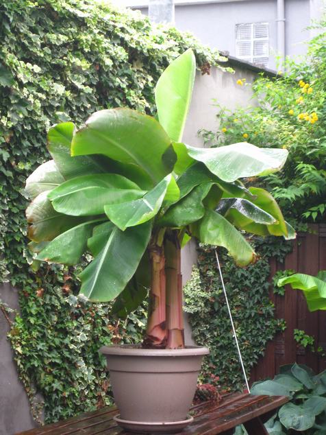 Ze werden 3,5 meter hoog en bloeiden allemaal zonder uitzondering. De bananen waren kleiner dan de consumptiebanaan, maar niettemin heel lekker. Ik heb ze moeten uitdelen op het werk (trots dat ik was), want we konden ze niet allemaal tegelijk opeten zoveel waren er - tientallen.