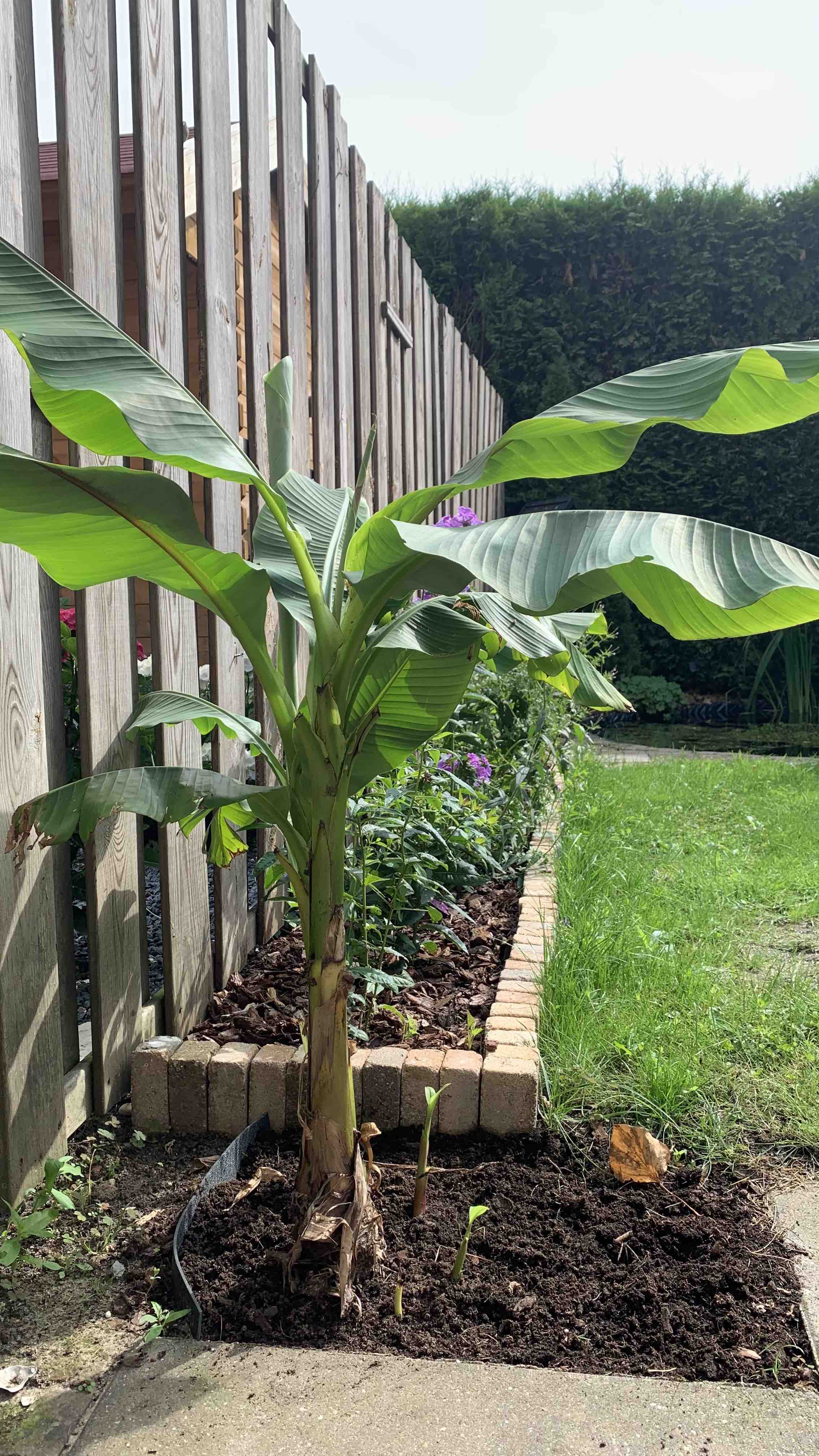 In het voorjaar van 2019 heb ik een Musa Basjoo gekocht. Deze heb ik toen in een grote pot gepland en op een zonnige plek in de tuin gezet. Aan het einde van de zomer had de plant een stamhoogte van 1.5 meter met bladeren die erg groot waren.
