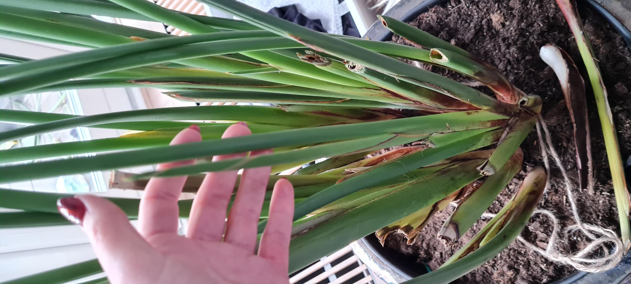 Overigens zou je de buitenste bladeren op elke 'voet' kunnen wegnemen, als die echt heel lelijk geel of bruin worden.