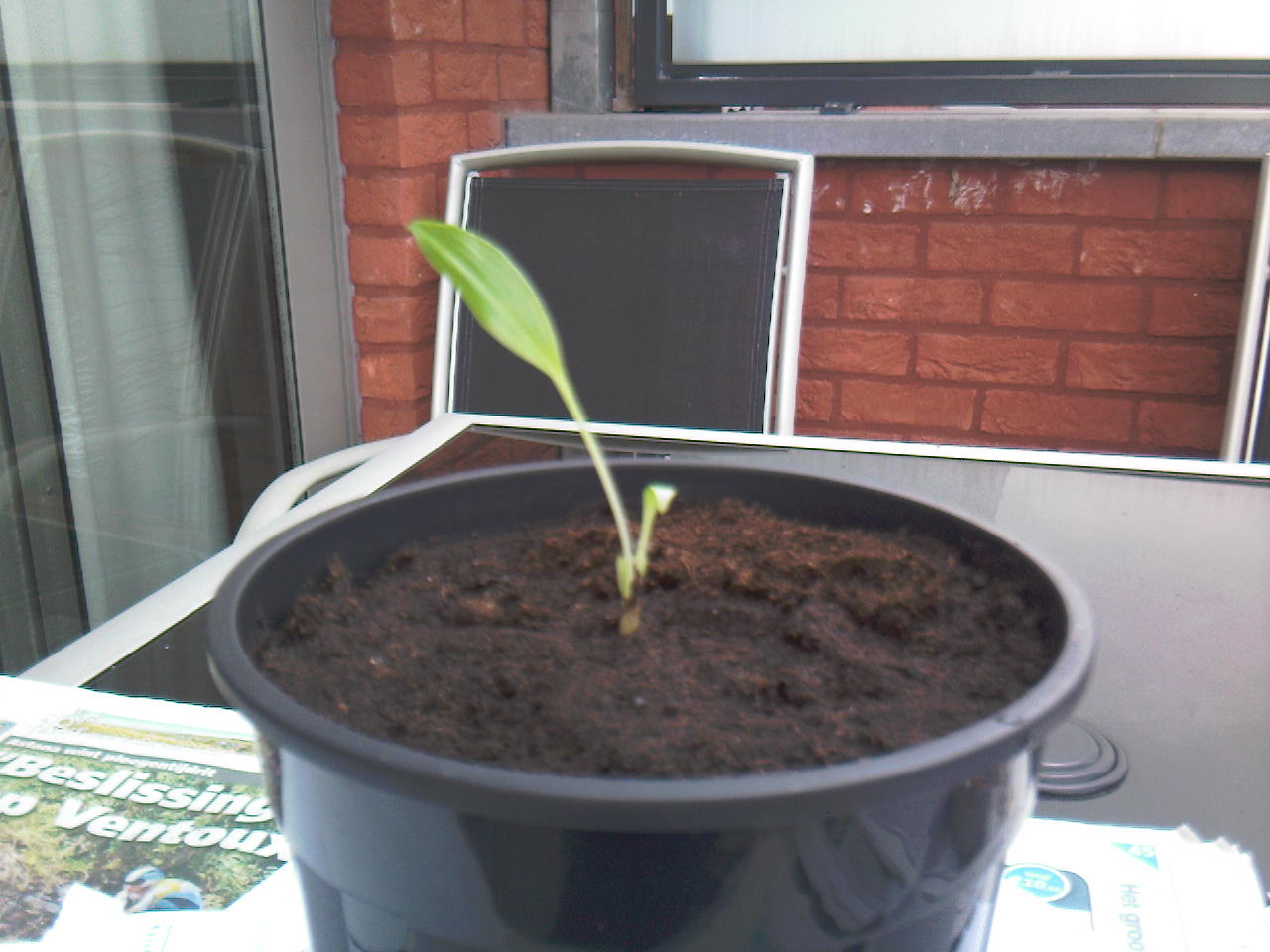 ben net terug van een weekje toscane (heerlijk daar, veel tropische planten ;) ) en het eerste wat me opviel toen ik naar mijn zaailingen ging kijken was het feit dat één ervan een gigantisch eerste blad uitgegooid had.