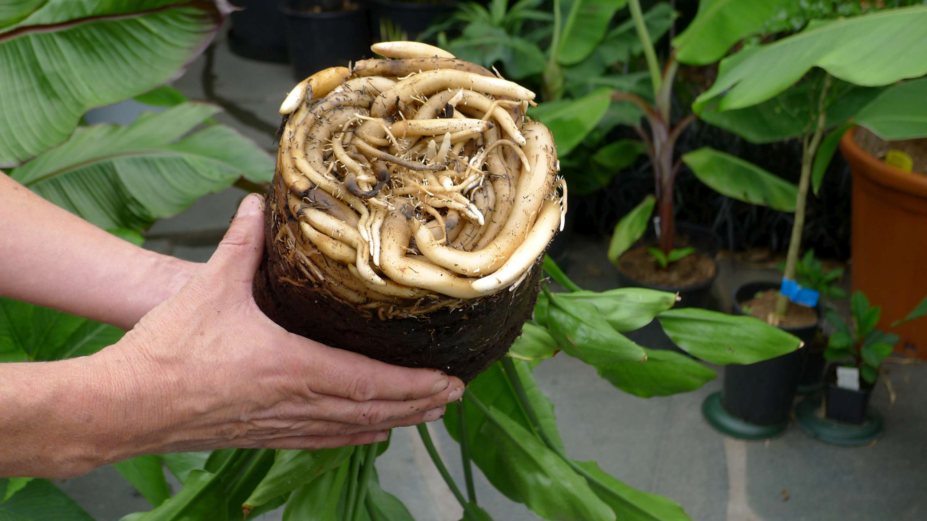 De pot begon te vervormen van de worteldruk, dus werd het tijd om eens te verpotten. Zeer nieuwsgierig de pot weg gesneden en dit kwam tevoorschijn. Het water heeft hem toch niet echt schade toegebracht.