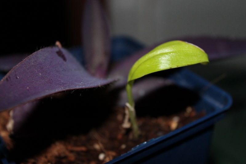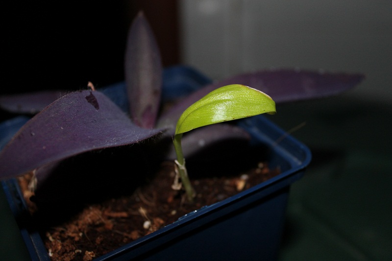 stel u voor mijn allereerste kiemling die ik ooit gezaait heb van een banaan, heeft het wonder boven wonder overleeft.