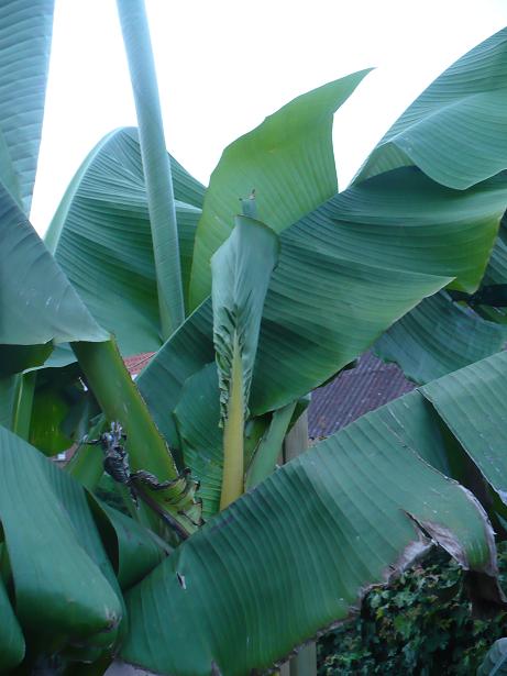 Ondanks de slechte zomer gaat mijn Basjoo een bloem aanmaken. Had het al een beetje zien aankomen het voorbije weekend omdat er een raar begin van een blad zat aan te komen en sins gisteren weet ik het zeker dat ik gelijk had. Ergens een hoera om het nog een keer mee te maken van dichtbij (2de keer). Maar ook jammer omdat ik de stam erna zal verliezen maar er is al opvolging verzekerd door de vele kleine uitlopers die de huidige pol aan het aanmaken zijn...