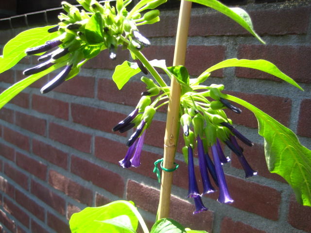 Ook deze planten heb ik kado gekregen op mijn verjaardag (ik ben echt verwend). In het draadje "van harte" had ik beloofd ze jullie te laten zien en kan ik meteen vragen of iemand mij kan vertellen wat de beste verzorging is. Ik weet dat ze verwant zijn aan Brugmansia's, zouden ze dan ook zo snel groeien en makkelijk te stekken zijn.......