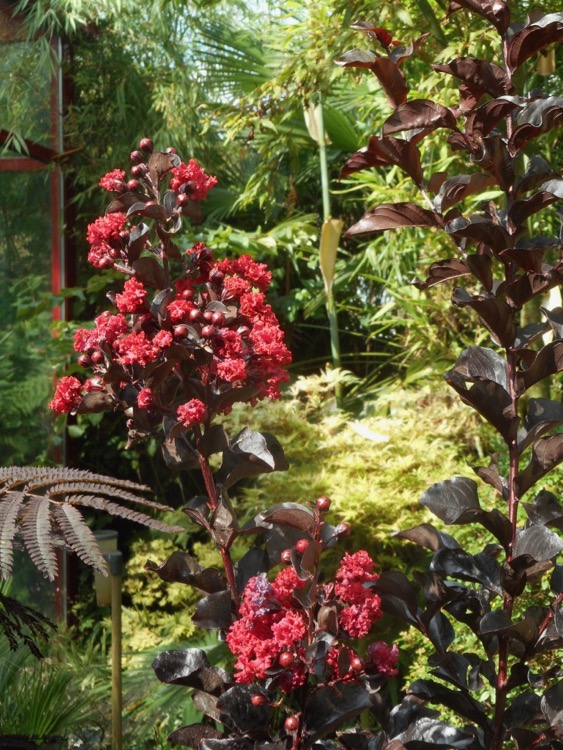 Ik had de cv al eens eerder maar die overleefde de winter niet. De laatste Lagerstroemia in de tuin, inmiddels uitgegroeid tot een flinke heester, ging in 2012 door vorst verloren. Die plant heeft nooit gebloeid. Sindsdien ben ik ook huiverig om Lagerstroemia uit te planten. Bloei is ook niet vanzelfsprekend. Dit exemplaar stond al in knop. Bovendien is de bloei kortstondig. Als ik de keuze heb tussen een bloeiende vorm of een variƫteit met een fraaie bladkleur, verkies ik het laatste. Een uitzondering betreft de Senna x floribunda een ruilplant van Jan GHP die gedurende de hele zomer bloeit.