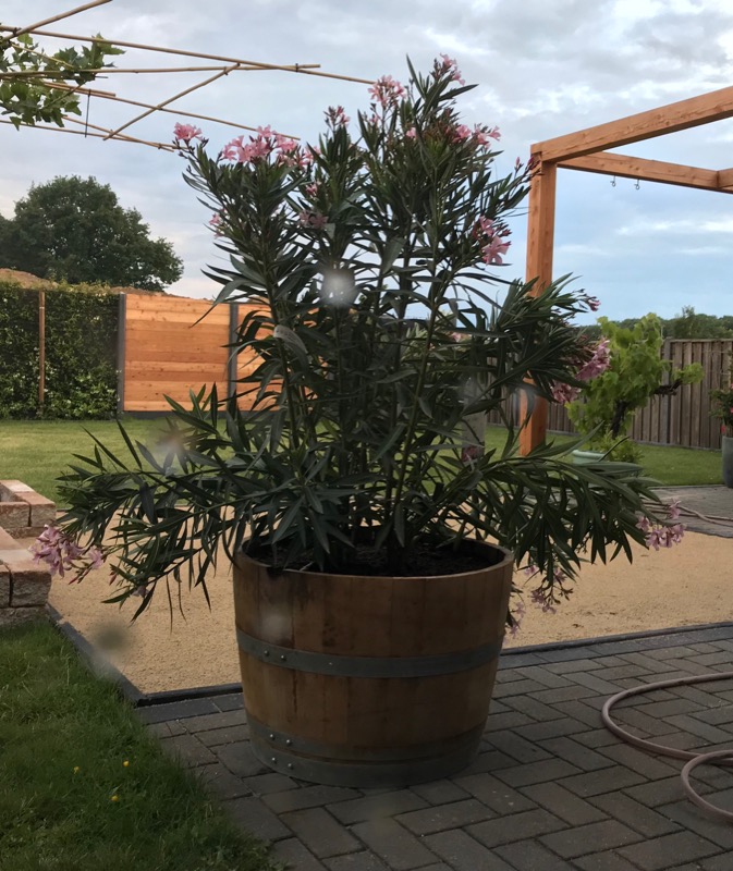 Van onze nieuwe oleander hangen een aantal takken slap.