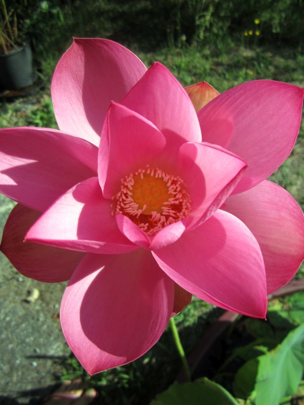 -Nelumbo nucifera een of andere roze variant, die vroeger mooie simpele roze bloemen maakte, maar sinds een paar jaar alleen nog maar dubbelgevulde cremewitte bloemen maakt. Waarom deze verandering snap ik niet.