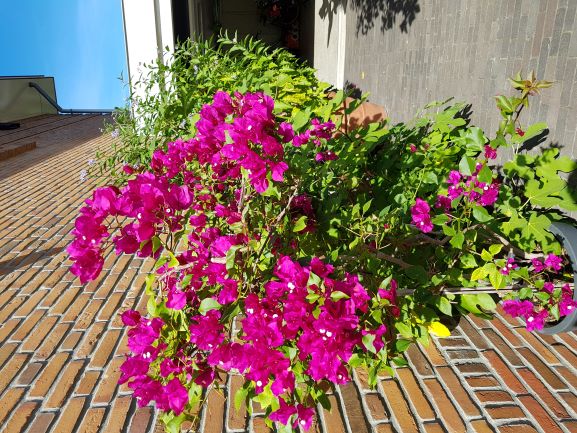 Ik zie dat je bericht mink, alweer wat ouder is. Het is normaal dat deze de roze bloemen verliest, groeit en weer nieuwe aanmaakt. Ik ben er wel achter dat dat van jaar tot jaar kan verschillen wanneer deze bloeit. Mijn exemplaar heeft vanaf juni t/m begin augustus volop in bloei gestaan. Toen viel alles vrij snel eraf en was er even rust. Nu begint de bloei weer op gang te komen. Deze bloeit meestal heel erg rijk in het najaar. De bloei zal steeds heftiger worden en ergens in oktober maximaal zijn. De bloemen blijven dan ook echt lang aan omdat het dan gemiddeld veel koeler is. Meestal gaat ie bij vorst bloeiend naar binnen zo ergens in november. DIt jaar heeft de plant een opmerkelijke groei doorgemaakt, veel beter dan andere jaren. Geen idee waarom, maar ik vermoed dat ik dit jaar wat meer heb gemest. Ik ga er maar weer van genieten want de kleuren zijn in dit jaargetijde net even wat intenser en dieper dan in de zomer. Zie de foto. Ik zal over twee weken wel een nieuwe foto erbij zetten. Sorry weer voor de liggende foto, ik krijg dat maar niet gefixt.