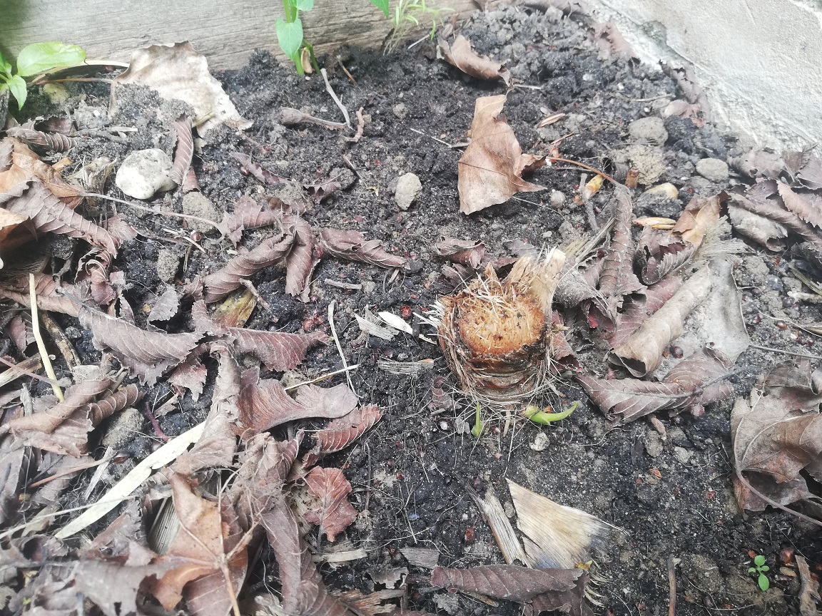 Eén van mijn cordylines ( gelukkig maar één) heeft de koudegolf van vorige week niet overleefd.