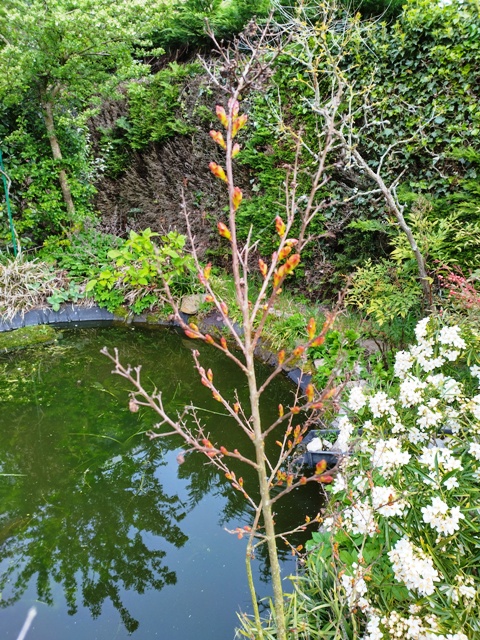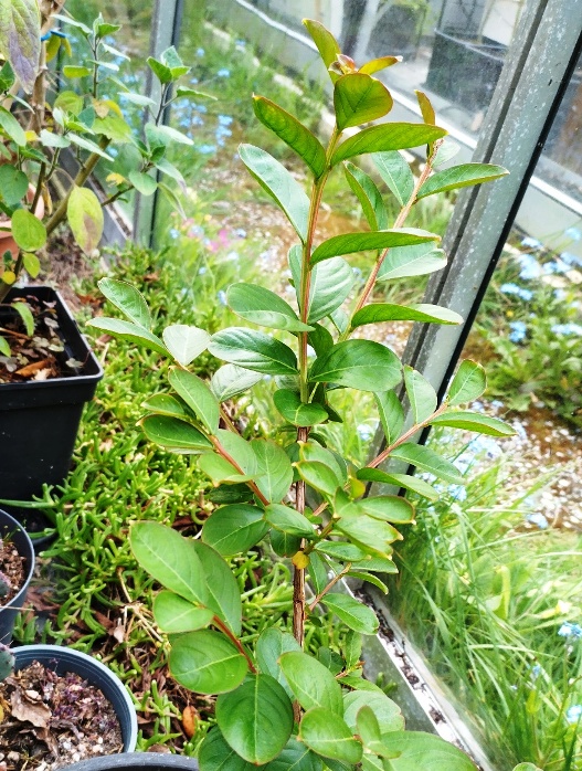Dan een Lagerstroemia in de kas. Al een mooie bladontwikkeling en groei: