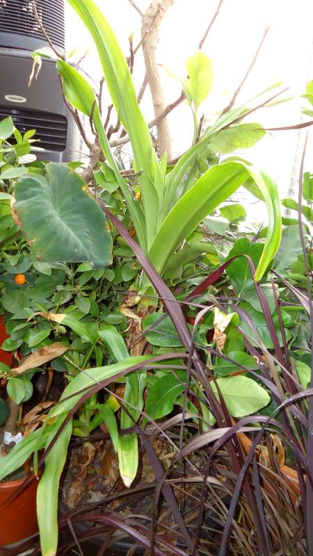 In ieder geval, alles leeft dus nog :thumb_up: . Ook de Crinum moorei in volle grond waar ik de knol een beetje van heb blootgelegd om te laten zien dat deze nog mooi gezond en hard is. Dit had ik niet verwacht.
