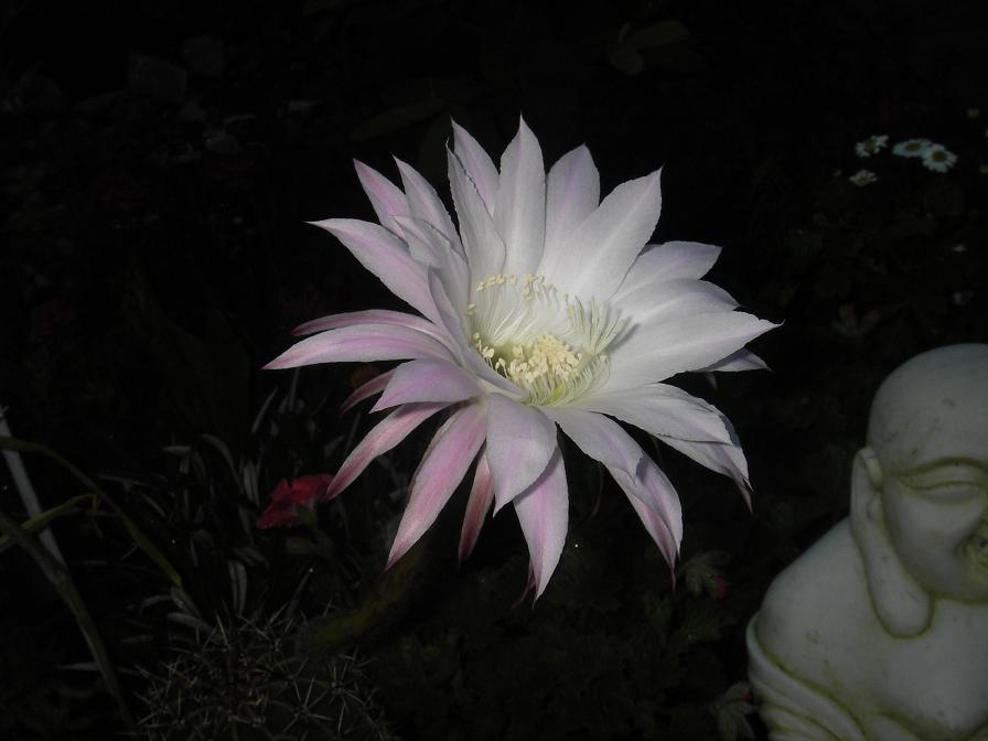 De Adenium heb ik een jaar of 4of 5 geleden gezaaid. Vorig jaar ook knopvorming gehad maar dat heeft niet doorgezet tot bloei. Dit jaar zit hij vol met knoppen en deze contastvolle bloei.