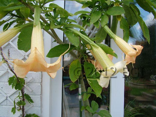 2012 was een slecht brugmansiajaar. Het voorjaar en de zomer waren te koud en nat. Toen het weer beter werd was de resterende tijd soms te kort om de planten voluit tot bloei te laten komen. Veel planten gingen nog volop in de knop de winter in.