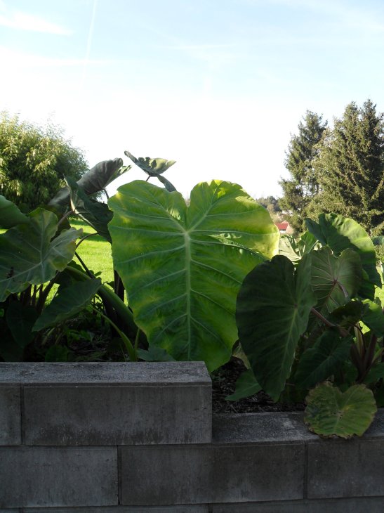 Hier gaat A. macrorhiza eindelijk een beetje goed, vorige jaren kreeg ik die niet boven 30cm.