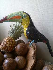 Haha, dat is leuk! Ik heb ook die interesse maar dan voor alles wat er met de tropen te maken heeft. Een toekan is een geweldige, slimme vogel. Ik heb een tijd geleden mij verdiept in de toekan omdat ik hem na wilde maken van papiermache en mozaïek. Ik heb meer beelden gemaakt. Zoals een blauwe ara, een paar gekko's, tropisch fruit,een flamingo een kakatoe, een hele boel zeeschildpadden (waaronder een hele grote van 80 cm) en verder nog tropische schelpen nagemaakt van papier mache en daarna met mozaïek.