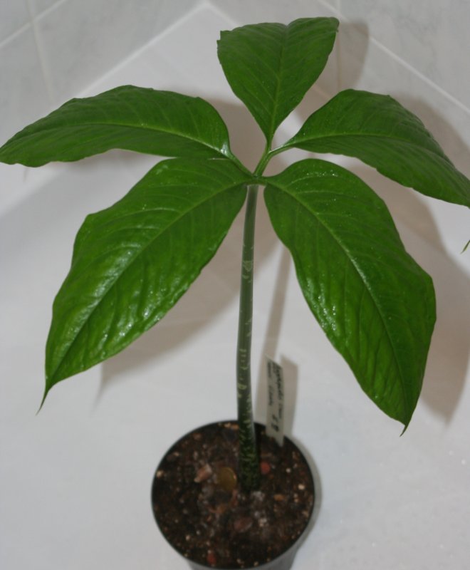 Dit is mijn Amorphophallus titanum, gezaaid voorjaar 2015, plant is nu ruim 70cm en nog steeds in goede gezondheid.