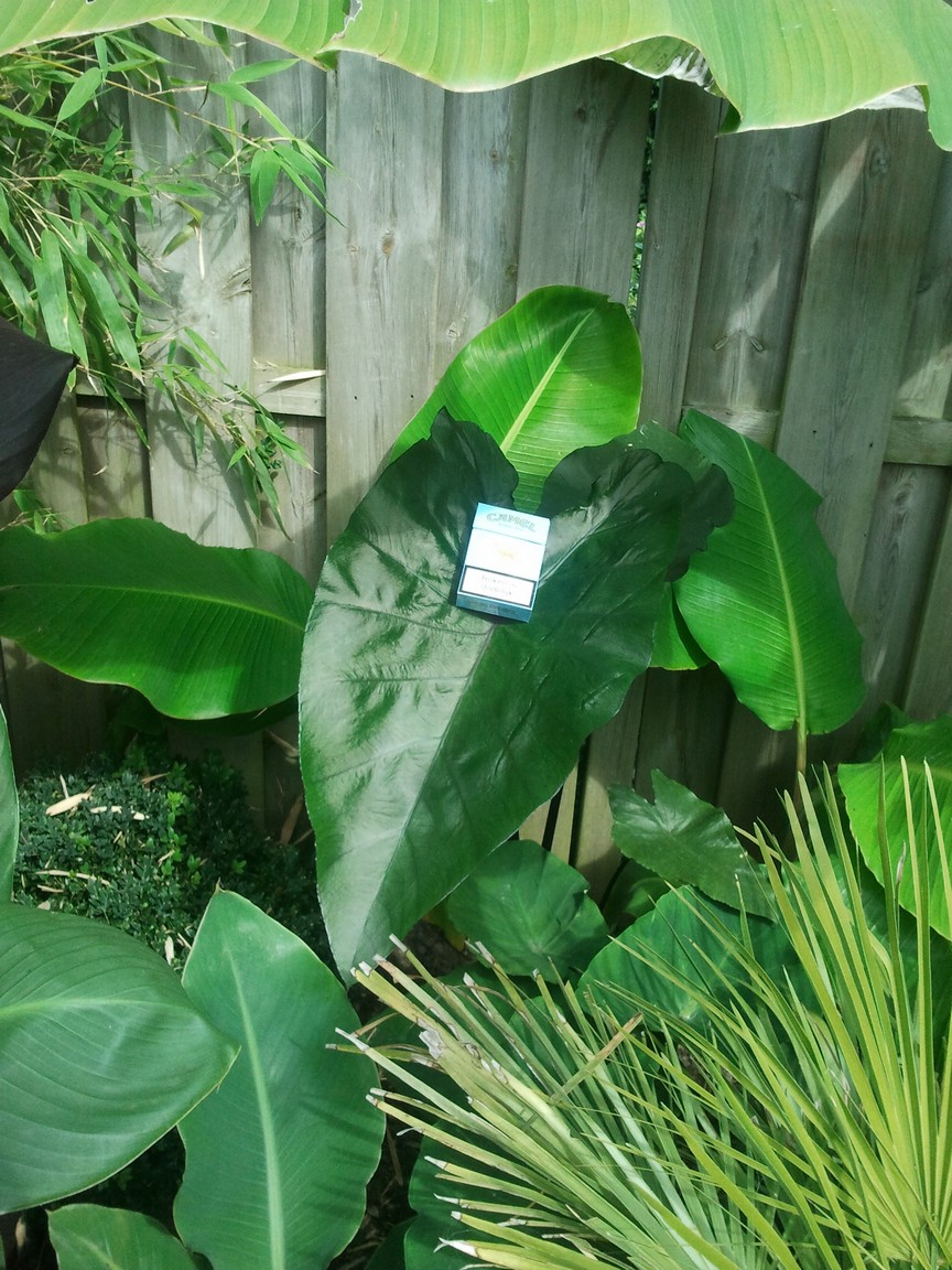 Die bladeren zijn zo groot dat je er onder kan schuilen met regen :) Hoe tropisch kan het nog meer?