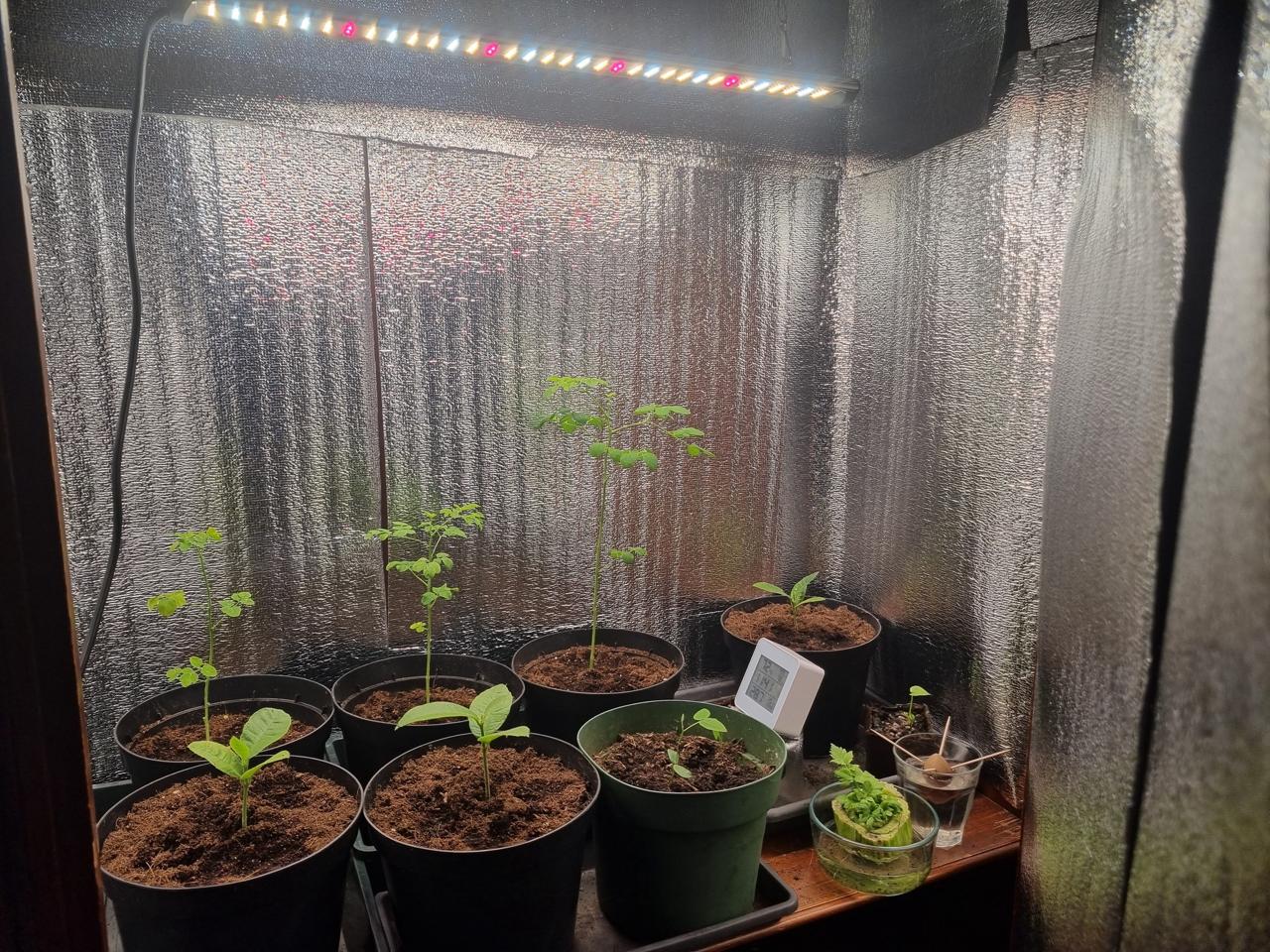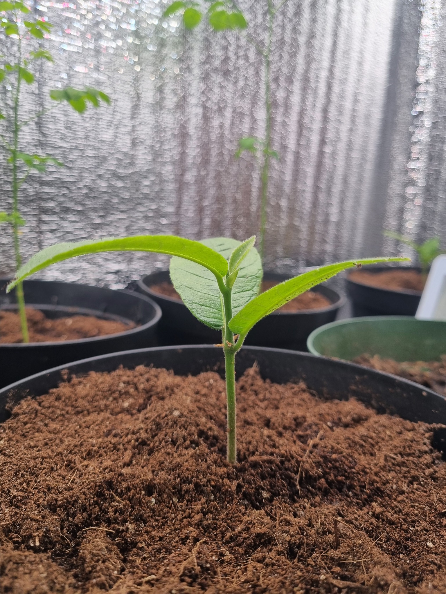 Je planten zien er gezond uit. Die Marang is ook een heel aardige plant aan het worden. Ik ben benieuwd hoe dat er op termijn uit gaat zien. Op pagina 1 van dit topic had ik een foto geplaatst van mijn bicapsularis zaailingen. Het leek mij aardig om eens te laten zien hoe ze er nu bij staan. Ik heb ze inmiddels in aparte potjes gezet en ze staan nog steeds in de niet verwarmde kas. Overdag bij mooi weer kan het makkelijk boven de 20 graden komen maar in de nacht vrijwel gelijk aan de buitentemperatuur.