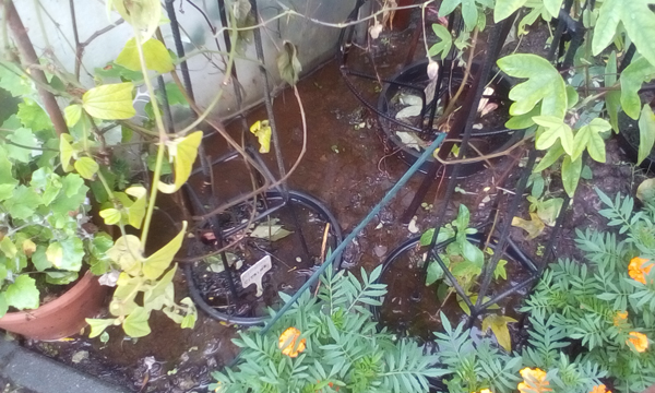 Kan zijn dat dit de bijna laatste bloemen zijn, we hebben zonet een enorm zwaar onweer met hagel gehad, er staat zo'n 10 cm water in de tuin, ook de serre staat onder, zowat alles staat blank. De bodem was al oververzadigd. Zal morgen bij klaarte wel weer werk hebben, de tuin was net weer in orde voor de opentuin van het weekend.... en toch we mogen nog niet klagen;