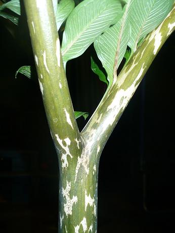 Dracunculus maakt eerst een stengel met bladeren waar de bloem dan bovenaan uitkomt