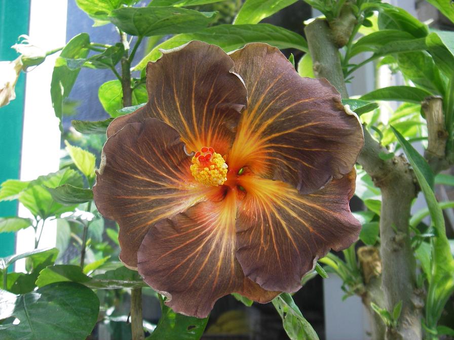 Al mijn hibiscussen staan zomers buiten. Vanaf de komende week gaan ze naar binnen, dan wordt het buiten te koud voor ze.