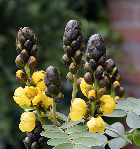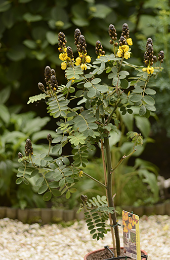 En een Senna didymobotrya, deze sluit zijn blaadjes net als een Albiza s'avonds doet en ruikt overduidelijk naar popcorn, vandaar ook wel de popcorn cassia genoemd.